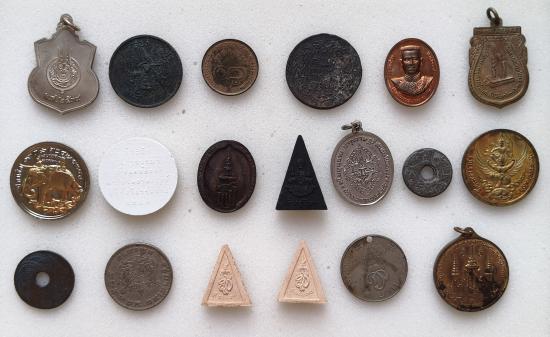 เคาะเดียว.เข็มกลัด,ล็อกเก็ต,เหรียญ,เนื้อผง รวม 33 ชิ้น บรรยายด้วยภาพครับ