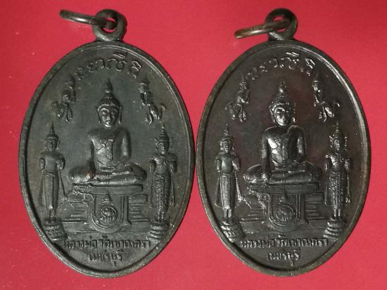 เหรียญหลวงพ่อวัดเขาตะเครา หลังหลวงพ่อเทวฤทธิ์ จ.เพชรบุรี พิมพ์ใหญ่ ปี ๒๕๑๖ 2 เหรียญ |
