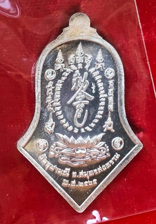 เหรียญกันชง ทรงจำปี หลวงพ่ออิฏฐ์ วัดจุฬามณี จ.สมุทรสงคราม เนื้อเงินพิมพ์ใหญ่ ลงยาสีแดง ซีลเดิมกล่องเดิม