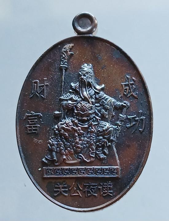 เคาะเดียว..ท่านกวนอูหลัง..ยันต์ดวงพิชิตชัย.หลวงพ่อพิณ.จังหวัดราชบุรีเนื้อทองแดงเดิมๆ