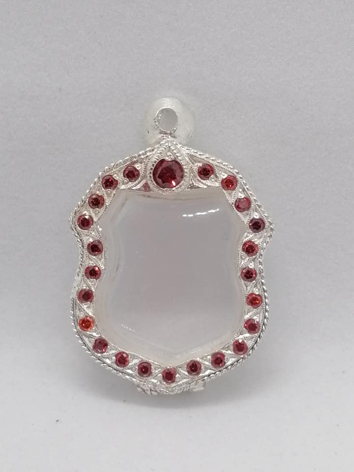 วัดใจ@@@ตลับเงินฝังพลอยแดงโกเมนมือ1ใส่พระพิมพ์รูปอารม์หลวงพ่อโสธรหรือใกล้เคียงขนาด |