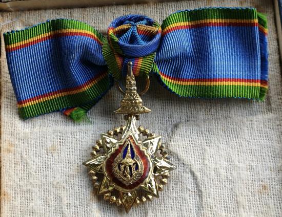 *เคาะเดียวเเดง*** เหรียญเครื่องราชย์อิสริยาภรณ์ มหามงกุฎ หลัง จปร. เนื้อเงินลงยาพร้อมแพรแถบ โบว์สุภาพสตรี *