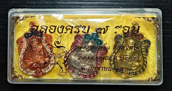พระชุด 3 เหรียญ เหรียญเสมา 7 รอบ หลวงพ่อหวั่น กุสลจิตโต วัดคลองคูณ จังหวัดพิจิตร กล่องเดิม |