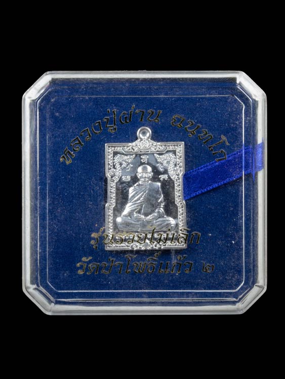 เหรียญ รุ่นรวยไม่เลิก หลวงปู่ผ่าน วัดป่าโพธิ์แก้ว 2 จ.ปราจีน บุรี เนื้อเงิน ตอกโค๊ต หมายเลข สภาพสวยกล่องเดิมๆ !!