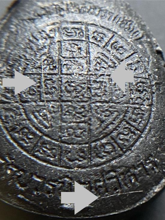 พระปิดตายันต์ดวงเล็ก ปี2523 สมเด็จพระญาณสังวร (เจริญ) วัดบวรนิเวศ_(เนื้อผงใบลานดำปลดหนี้)_มีเส้นเกศา_ |