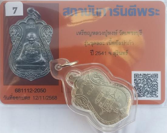 เคาะเดียวแดง+++เหรียญหลวงปู่หงษ์ วัดเพชรบุรี รุ่นขุดสระเนื้ออัลปาก้า จ.สุรินทร์ ปี 2541 มาพร้อมบัตรรับรองพระแท้