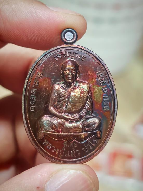 เหรียญเจริญพรบน หลวงปูแผ้ว ปวโร เนื้อทองแดง สภาพสวยครับ พร้อมกล่อง (1)