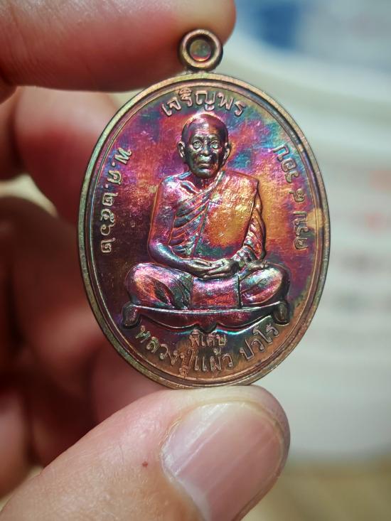 เหรียญเจริญพรบน หลวงปูแผ้ว ปวโร เนื้อทองแดง สภาพสวยครับ พร้อมกล่อง (3)