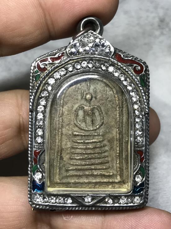 พระสมเด็จเก่า พร้อมตลับเงิน (ผสม) ฝังพลอย ลงยา ไม่ทราบที่