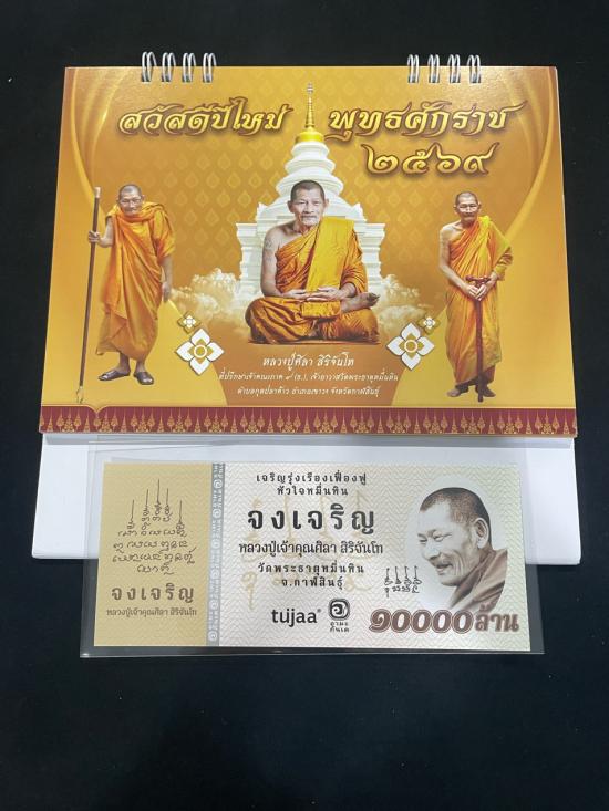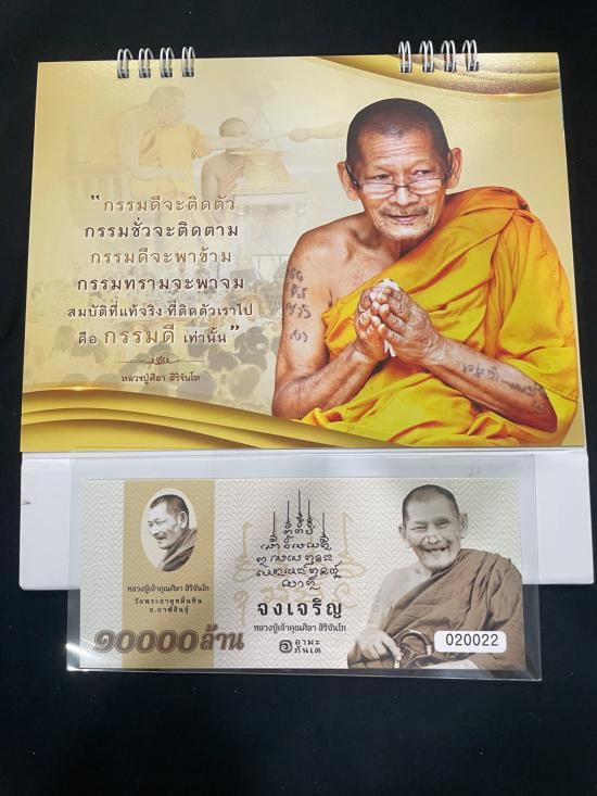 !!!เคาะเดียวได้ 2 รายการ !!ปฎิทินตั้งโต๊ะพร้อมธนบัตร 10000 ล้าน หมายเลข 020022 หลวงปู่ศิลา สิริจันโท |