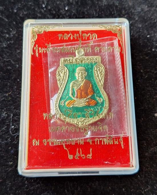 วัดใจ หลวงปู่ทวด หลวงปู่ศิลา เมตตาอธิษฐานจิต รุ่นเลื่อนสมณศักดิ์ เหนือดวง เนื้อทองทิพย์ ลงยา No.60 |