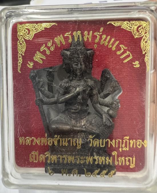 รูปหล่อพระพรหมรุ่นแรก หลสงพ่อชำนาญ เนื้อทองแดง แผ่นยันต์ค้ำดวงฝาบาตร พร้อมกล่องเดิม