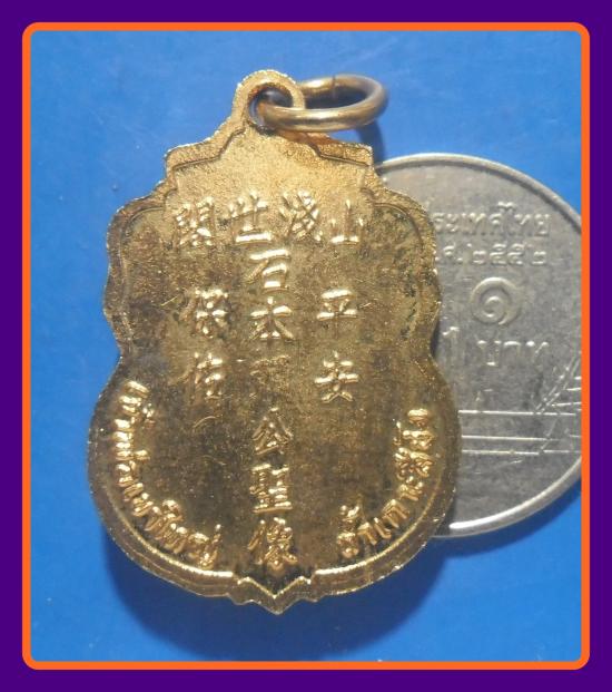 พิมพ์เล็ก สวย-100-เหรียญเสมา เจ้าพ่อเขาใหญ่ เกาะสีชัง จ.ชลบุรี เนื้อกะไหล่ทองลงยาสีน้ำเงิน |