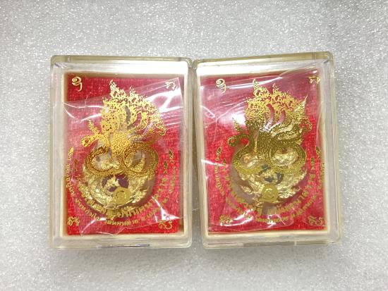 หัวใจเศรษฐีพญาอนันตนาคราช ของหลวงปู่ถิน เนื้อสัมฤทธิ์ชุบทอง พลอยนาคราชสีเขียว , แดง