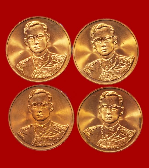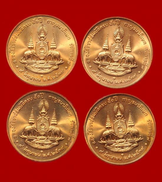 เหรียญรัชกาลที่ 9 ปี 2539 ครองราชย์ 50 ปี 4 องค์ เนื้อทองแดง สวยๆ |