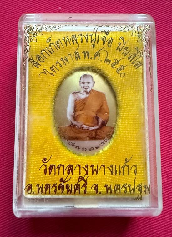 วัดใจไปเลย ล็อกเก็ตหลวงปู่เจือ วัดกลางบางแก้ว รุ่นไตรมาส ปี 2550 ฉากทองหลังอุดผงฝังแผ่นโค้ด ผงหลุดตามสภาพ |