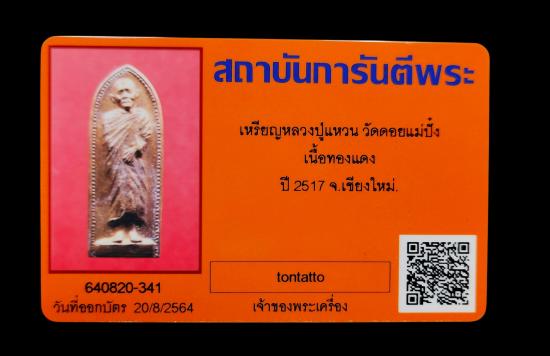 เหรียญรางปืน หลวงปู่แหวน สุจิณโณ เนื้อทองแดง ผิวไฟ ตอกโค๊ต ปี2517 พร้อมบัตรG |