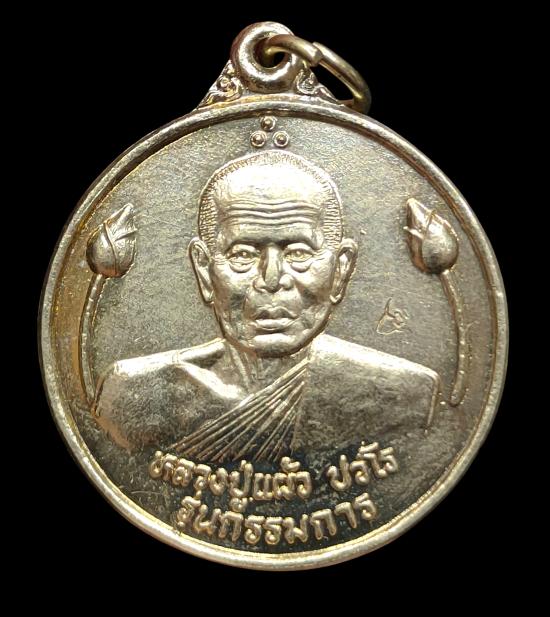 เหรียญกรรมการ 1 บัวคู่ ปี 2550 เนื้ออัลปาก้า หลวงปู่แผ้ว ปวโร วัดรางหมัน กล่องเดิม |