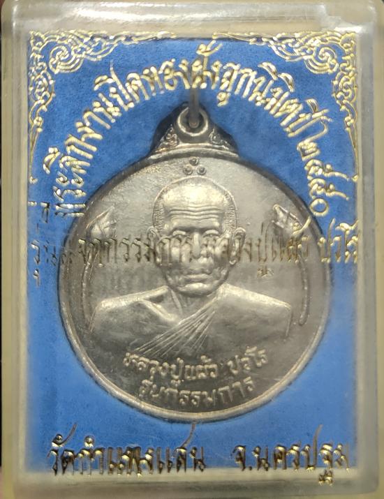 เหรียญแจกกรรมการปี 2550 งานปิดทองฝังลูกนิมิตปี 2550 วัดกำแพงแสน จำนวนสร้าง 3,600 เหรียญ