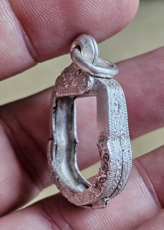 ตลับเงิน รูปเสมาเล็ก อย่างดี ยิง%เรียบร้อย 93.80% งานมือ ขนาด (1.50X1.90)Cm หรือเหรียญขนาดใกล้เคียง สวยเดิม เคยใส่พระเหรียญตามรูป ผมแกะมาล้างทำความสะอาดเบื้องต้นให้กำลังกลับดำครับ เงินแท้%สูงตามเอกสารครับ |