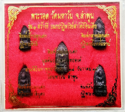 << วัดใจ >> ชุดพระรอด วัดมหาวัน จ.ลำพูน รุ่น 1 สร้างที่ยมกปาฏิหาริย์สาวัตถี ประเทศอินเดีย สภาพสวย ครบทั้ง 5 พิมพ์ |