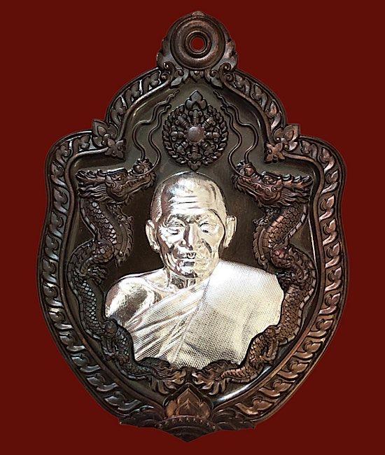 หลวงปู่มหาศิลา อายุวัฒนะมงคล81 มังกรคู่ เนื้อนวะหน้ากากเงิน จมูก100 เลข606กล่องเดิม สภาพคัดสวยๆ