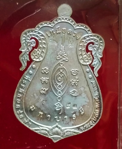 เหรียญเสมาเงินลงยา หลวงปู่แผ้ว วัดรางหมัน พร้อมกล่อง รุ่นเหนือดวงมหาบารมี เลข 53 ปี 2554