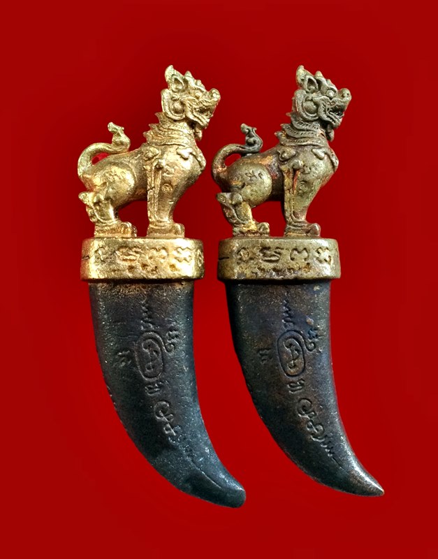 +!!เคาะเดียวllดง ตลอดสาย!!+ (รับ 2 อัน) เขี้ยวสัมฤทธิ์สิงห์มหาโชค มหาเศรษฐี ท่านเจ้าคุณธงชัย วัดไตรมิตร ปี2559 ขนาดสูง 2 นิ้ว ตอกโค้ดและเลขตามรูปครับ พร้อมเลี่ยมเดิมครับ