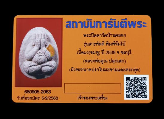 5. 11 ก.พ. 2539 เข้าพิธีพุทธาภิเษกอีกครั้ง ณ วัดบ้านคลอง โดยมีคณาจารย์โดยมีนามอันเป็นมงคล 9 รูป ได้แก่