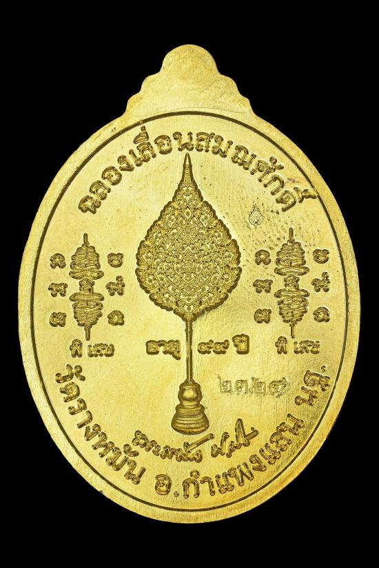 เหรียญฉลองเลื่อนสมณศักดิ์ หลวงปู่แผ้ว ปวโร วัดรางหมัน นครปฐม อายุ ๙๙ ปี เลข ๒๓๒๔ พร้อมกล่องเดิม เนื้อฝาบาตร |