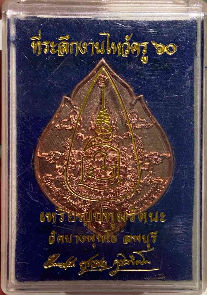 เหรียญปทุมรัตนะ ที่ระลึกงานไหว้ครู พระครูปลัดยุทธนา พระอาจารย์เอก วัดบางพุทโธ จ.ลพบุรี ปี 2560 |