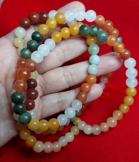 สร้อยประคำหินหยก 5 สี 108 เม็ด ขนาด 9 มิล |