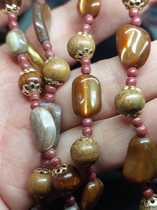 ***วัดใจ**สร้อยคอเก่าญี่ปุ่น หินผสมลูกปัดไม้ ยาวๆ 42 นิ้ว สวยๆ |