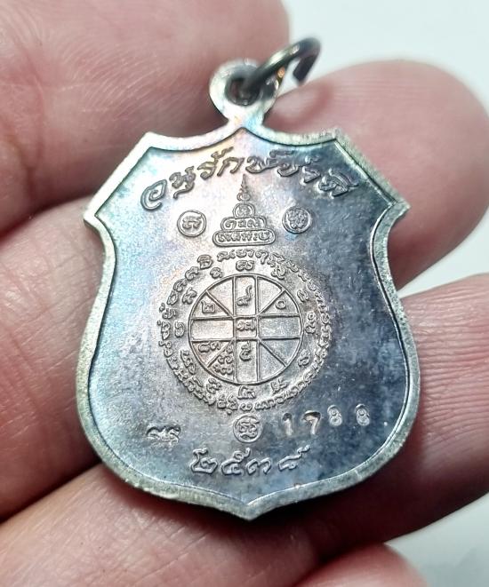 เหรียญอาร์ม รุ่นอนุรักษ์ชาติ ปี38 หลวงพ่อคูณ ปริสุทโธ หลวงพ่อเกษม เขมโก ปลุกเสก เนื้อเงิน หมายเลข1788 |