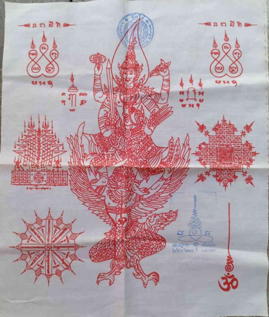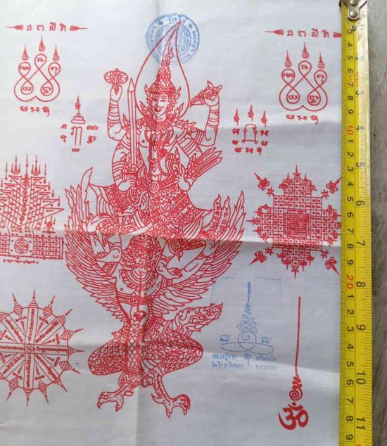 ผ้ายันต์พระนารายณ์ทรงครุฑหลวงปู่ผาดวัดไร่ จ.อ่างทองเคาะเดียวแดง |