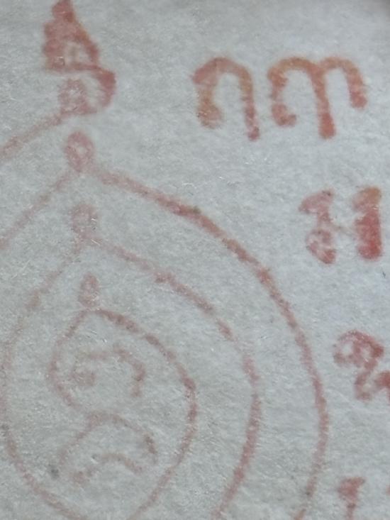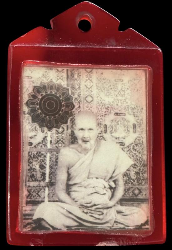 รูปถ่ายหลวงปู่เผือกวัดกิ่งแก้วพัตเดี่ยว กระดาษหนังไก่หลังยันต์แดงไม่ทราบปี |
