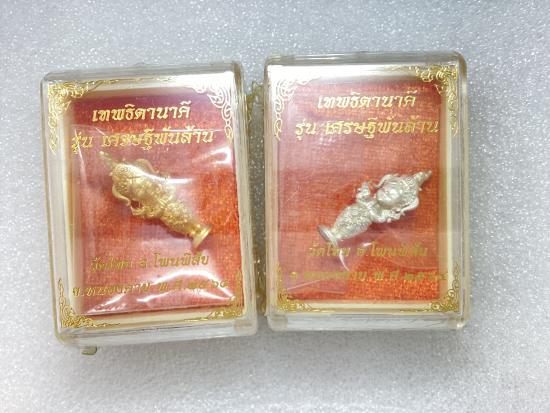 เทพธิดานาคี รุ่น เศรษฐีพันล้าน วัดไทย อ.โพนพิสัย จ.หนองคาย สูง 3 ซ.ม. เนื้อสัมฤทธิ์ชุบทอง,เงิน ซีลเดิมยังไม่ได้แกะ ( 2 องค์ )