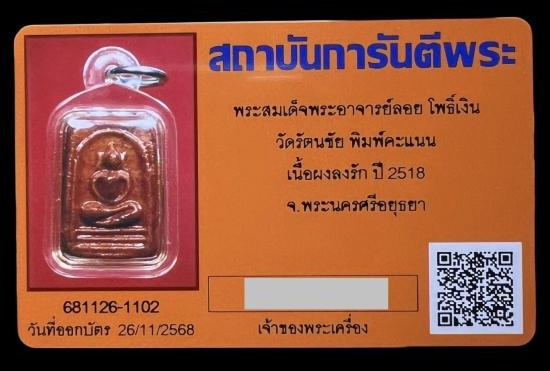 พระผงสมเด็จ(กลีบบัว มีกิน) เคลือบสีแดง อาจารย์ลอย โพธิ์เงิน วัดรัตนชัย