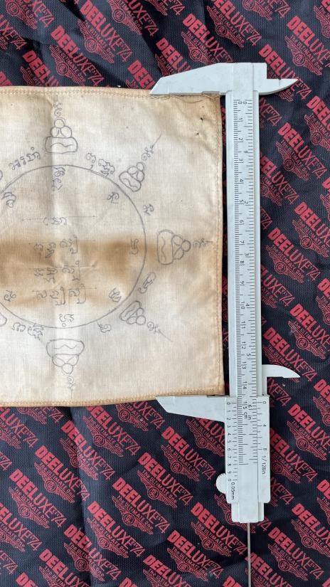 ผ้ายันต์รองหมวก หรือหัวเสาไม่เเน่ใจ จารมือ เก่าแท้ดูง่ายไม่ทราบที่ครับ |