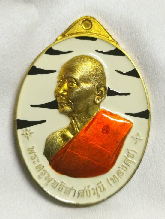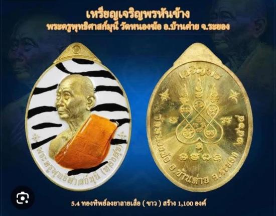 หลวงปู่ทองสุข วัดหนองฆ้อระยอง เหรียญเจริญพรหันข้างลงยาลายเสือ