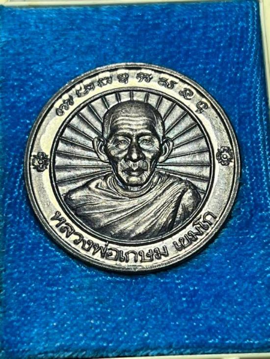 หลวงพ่อเกษม เขมโก รุ่นอนุสรณ์ นเรศวร เนื้อเงินพร้อมกล่องเดิม
