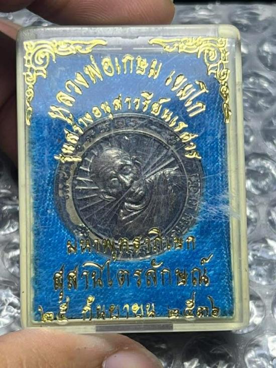 ชื่อพระเครื่อง หลวงพ่อเกษม เขมโก รุ่นอนุสรณ์ นเรศวร เนื้อเงินพร้อมกล่องเดิม