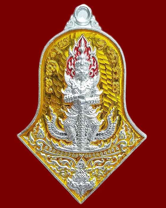เหรียญท้าวเวสสุวรรณ รุ่น เทวาประทานทรัพย์สินเจริญดี หลวงพ่ออิฏฐ์ วัดจุฬามณี เนื้อเงินลงยาเหลือง |