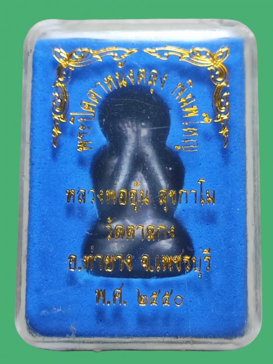 พระปิดตาหนังตะลุง หลวงพ่ออุ้น สุขกาโม วัดตาลกง จ.เพชรบุรี เนื้อสัมฤทธิ์ พิมพ์ใหญ่ ตอกโค๊ตชัดเจน สภาพสวยเดิมๆ กล่องเดิม |