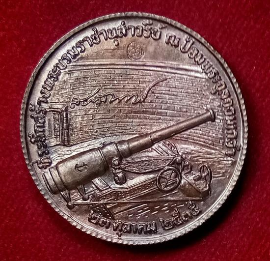เหรียญ รัชกาลที่ 5 ที่ระลึกสร้างพระบรมราชานุสาวรีย์ ณ.ป้อมพระจุลจอมเกล้า ปี 35...ขอบสตางค์...ตอกโค้ด |