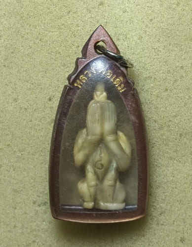 เขี้ยวแกะพระปิดตา กรอบหลวงพ่อเดิมไม่ทราบที่ครับ