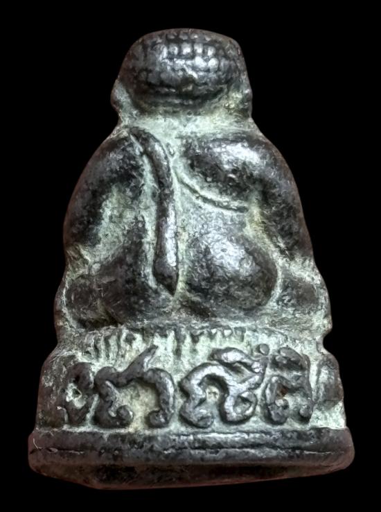 พระสังกัจจายน์นั่งบัวนะชาลีติ เนื้อตะกั่วเก่า หลังนะชาลีติ หลวงปู่หลิวปลุกเสกยุคต้น |