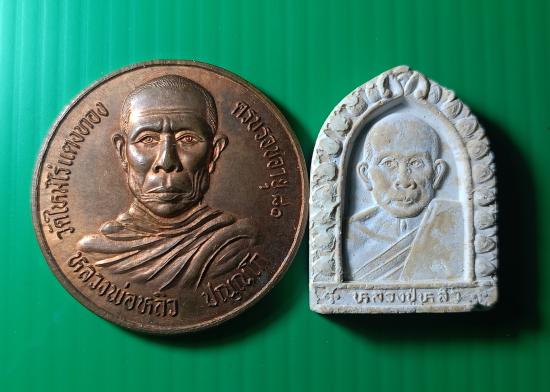 เหรียญบาตรน้ำมนต์หลวงปู่หลิวพร้อมพระรูปเหมือนเนื้อผงปี 31+ปี36 1ชุด 2 องค์