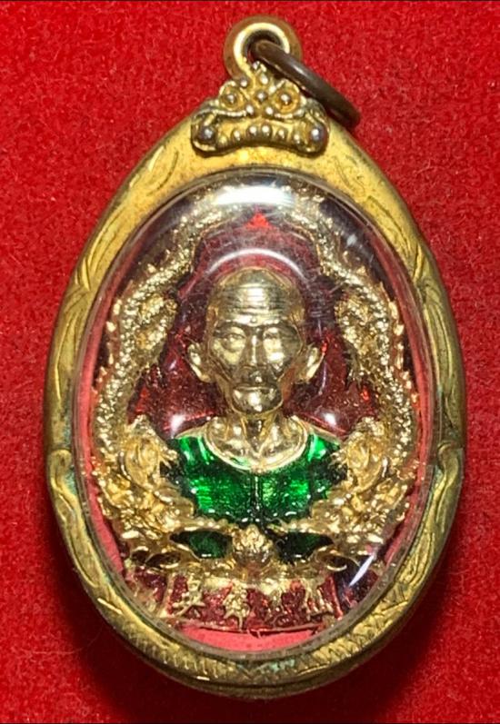 เหรียญหล่อมังกรคู่ เซียนแปะโรงสี โง้วกิมโคย รุ่น ฟ้าประทานพร เนื้อกะไหล่ทองลงยาแดง |