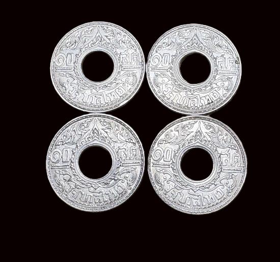 เหรียญเงินรู 10 สต.2484 จำนวน 4เหรียญ เนื้อเงินแท้ ลายกนกแข้งสิงห์ (เคาะเดียว)